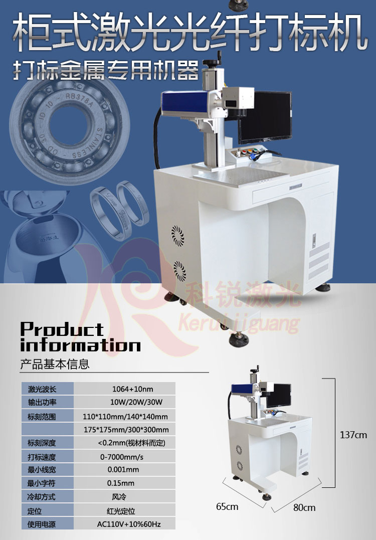 光纤激光打标机是操纵激光束在各类差别的物资外表打上******的标记。打标的效应是经由过程表层物资的蒸发显露深层物资,或是经由过程光能致使表层物资的化学物理变更而"刻"出陈迹,或是经由过程光能烧掉局部物资,显出所需刻蚀的图案、笔墨、条形码等各类图形。